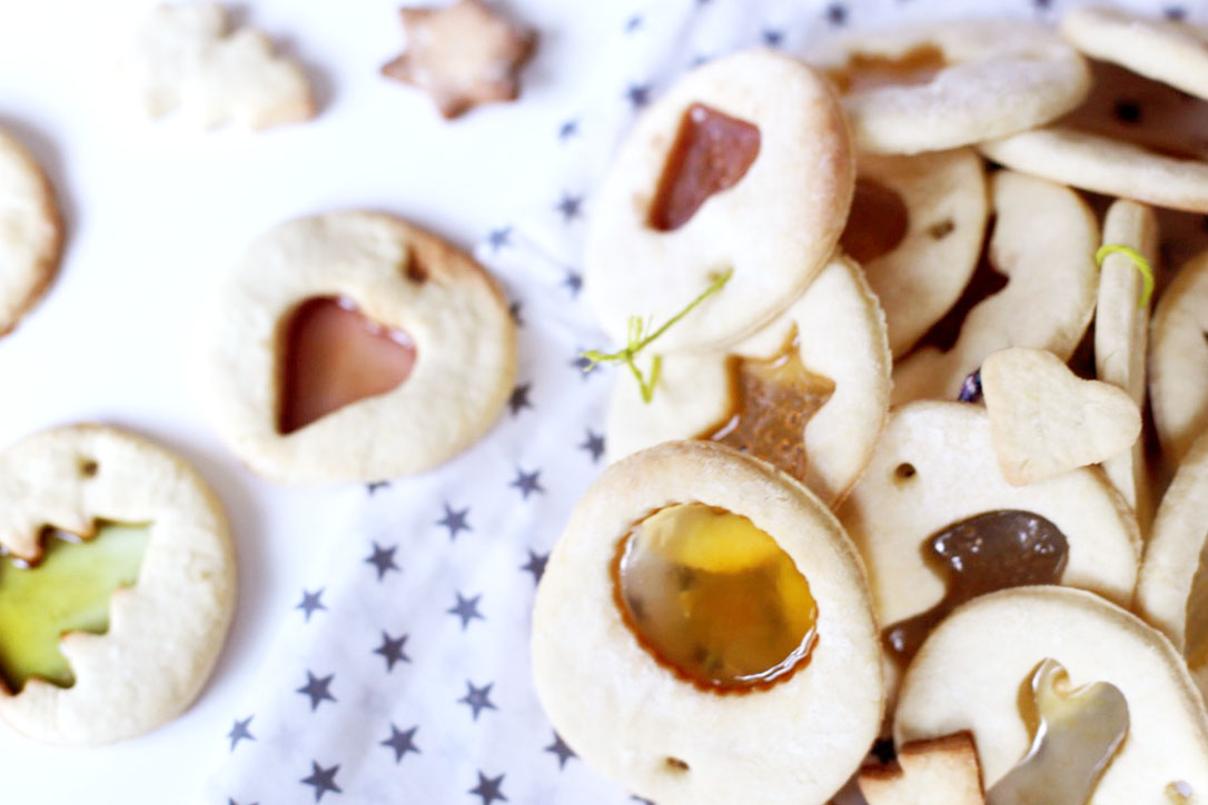 En ce moment, ne me demandez pas pourquoi, je trouve plein de choses dans la rue (pour ne pas dire dans les poubelles !) et parmi ces objets trouvés il y a eu une jolie série de magazine de recettes, de ceux que je pourrais très facilement achetés : Saveurs et Marmiton. Et le bonus c’est que ces magazines étaient de l’hiver dernier et faisaient leur “Une” autour des recettes de fêtes de fin d’année. C’est donc tout naturellement que le hasard m’a conduit vers cette recette que je ne connaissait ni d’Eve ni d’Adam mais qui m’a tout de suite semblé de épatant : les biscuits vitraux !