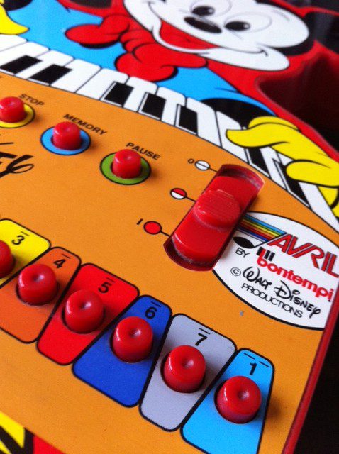 J’ai aussi eu en bonus un jouet inconnu à mon tableau de chasse : un piano électronique Bontempi Mickey Mouse ! Une petite merveille en état de fonctionnement qui aura peut être raison de mes nerfs lorsqu’il sera entre les mains de ma poupinette (réglage du son encore un peu rudimentaire !!!)