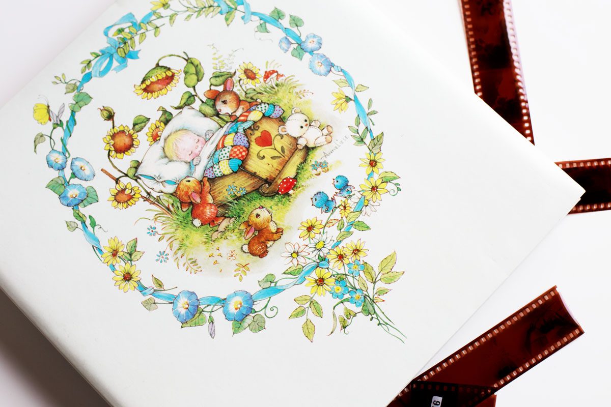 Et le hasard a plutôt bien fait les choses puisqu’ Orange Verte Vintage en avait un sous le coude tout juste au moment où je le désirais. Une transaction plus tard, il était là, encore vierge, les films transparents non décollés et les coins légèrement jaunis par le temps : un album de naissance qui n’avait pas été rempli… je me suis posée la question du “pourquoi ?”. Pourquoi un aussi mignon petit album n’avait pas connu une chouette histoire de bébé. Sombre destin ou abandon désinvolte, j’ai préféré le deuxième destin. Je me suis donc sentie une mission supplémentaire en redonnant de l’âme à ce bout d’objet qui ne demandait que ça. Sentimentale vous me direz, je vous répondrais à 300% et le pire c’est que ça ne date pas d’hier 😉